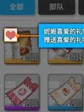 妮姬喜爱的礼物会标注红心并且置顶赠送喜爱的礼物会大幅增加好感度。