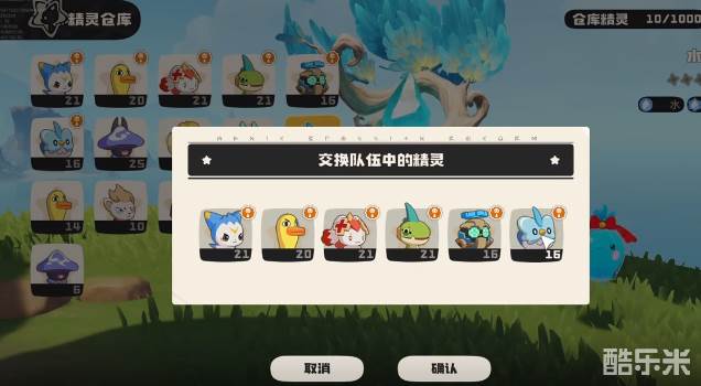 在点击之后,玩家就可以看到背包中所有的精灵这个界面是比较实用的,玩家可以在这个界面自由的去交换精灵。例如可以交换背包,还有仓库中的精灵,如果打算去挑战强大的boss,也可以把背包中一些等级相对低的精灵全部都放入到仓库中,然后去更换成战斗力比较出色的。