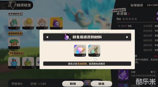 如果其中有一些精灵是大家不需要使用的,就可以选择放生,通过放生之后就可以获取资源。而这些资源在后期就可以带来较好的发展,在放生之后,玩家所获得的资源可以让玩家在后期拥有较好的辅助效果。