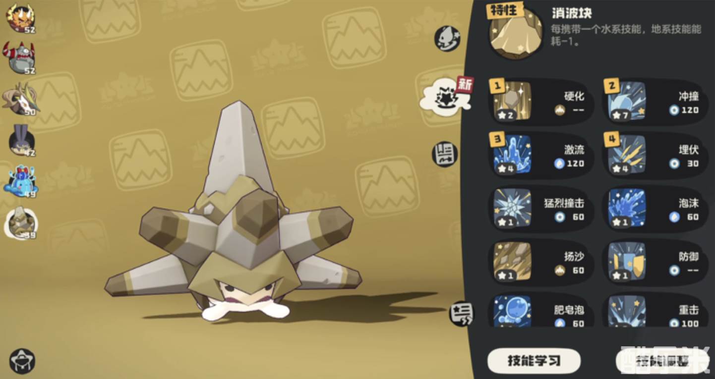 在水系技能的选择上,可以考虑“激流”或“泡沫”,这类技能通常附带减速或控制效果,不仅可以触发“消波块”效果,还能有效干扰敌方输出节奏。而“岩甲强化”则是嗜波螺的核心防御技能,它能够提升自身的物防和魔防,可以叠加两次,大幅度提升生存能力。如果想进一步加强抵御魔法攻击的能力,还可以搭配“防御”或“水泡盾”等防御类技能,在关键时刻起到稳定局面的作用。