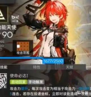 1、攻击力提升,每次攻击变为相当于攻击力一定比例的5连击,若存在投递坐标,立即对该处造成一次相当于攻击力一定比例的物理溅射伤害并将一名再部署时间最长的地面干员部署至该处,使其获得数点技力。