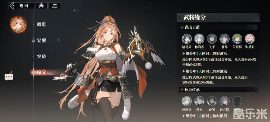 三国志幻想大陆2枭之歌孙尚香阵容怎么搭配?其实大家可以考虑一下这个角色的羁绊效果,因为其他的效果上面其实还是需要跟更多的角色配合,下面和酷乐米小编一起来看看吧