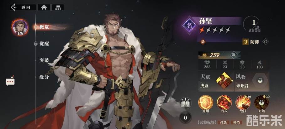 他一般在阵容中都是能够稳坐前排的,对于那些在游戏初期未能有幸将孙坚纳入麾下的玩家而言,也不必过于焦虑,因为孙坚的价值,绝非仅仅局限于开局的争夺,作为一位紫色武将,孙坚在后期的多上场空间,拥有全面而均衡的防御机制与卓越的控场能力,他的技能设计,巧妙融合了攻击与控制的双重元素,不仅能够对敌方整列造成输出,更在伤害之余,附加了牵制与弱化的双重效果。