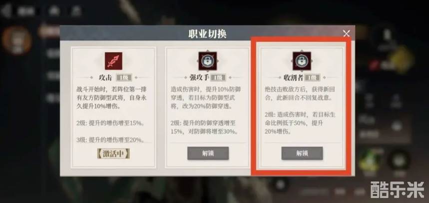 当刘备与关羽、张飞、赵云、张郃、蹇硕这五位猛将组成一个阵容时,他们可以共同激活蜀国阵营光环,拥有25%的增伤与减伤加,为了让这个阵容的威力发挥到极致,其中每位武将的转职选择都至关重要,关羽转职可以转职为收割者,获得击杀再动机制,配合其单体秒人的特性,一旦成功击杀目标,便能立即再次行动,实现连续秒人的恐怖效果。