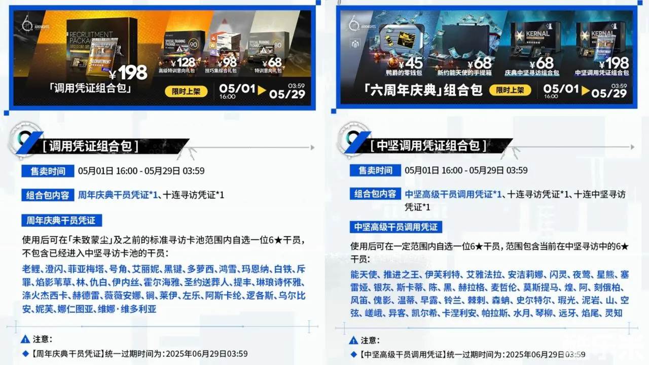 两个礼包里的干员不同!一定要确认自己想要的干员在正确的礼包里,别买错了。