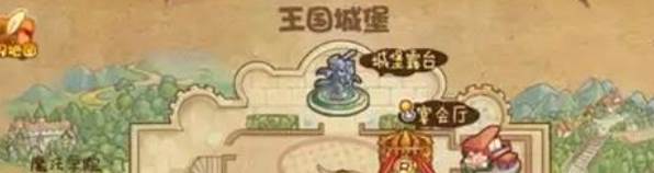 1、点击界面右上角的地图图标,在王国城堡区域找到魔法学院的标识(通常位于城堡后方或中心区域)。