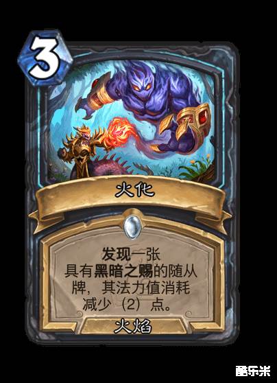 效果:发现一张具有黑暗之赐的随从牌,其法力值消耗减少(2)点。