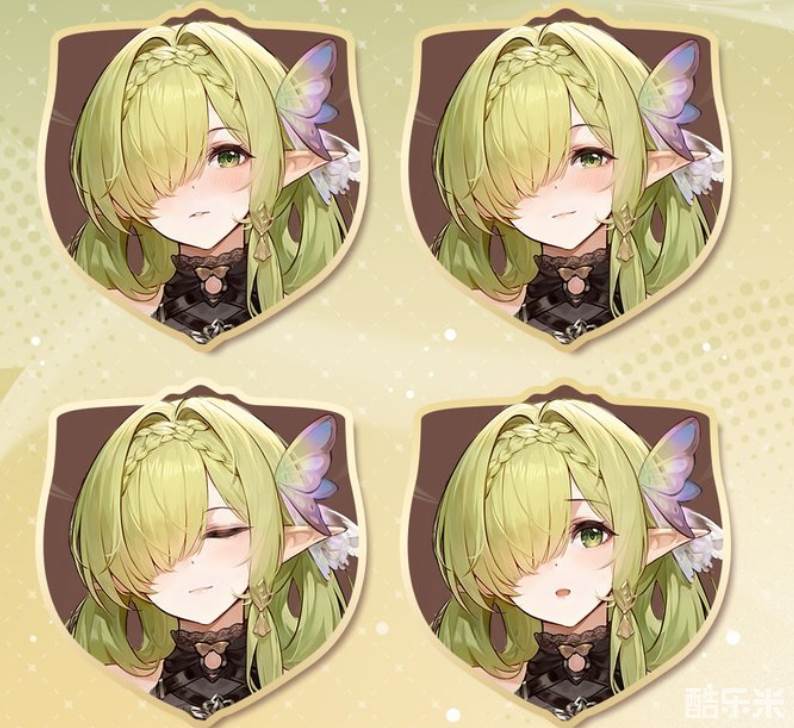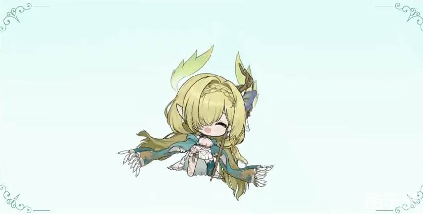 立绘的整体风格是偏自然魔法系的治愈型少女,融合了中世纪精灵或德鲁伊的形象,手持一根像是法杖的藤蔓装饰物,上面挂着一个灯笼。淡绿色的长发,带有自然气息,点缀着蝴蝶发饰与花朵。整体服饰是开放式的仪式感礼裙,绿色与白色是主色调,边缘有金色花纹装饰,呼应自然与生命的主题。