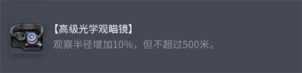 说明:区别于炮队镜,它在移动中也能发挥视野增益,推荐与炮队镜二选一,根据自身打法灵活搭配。