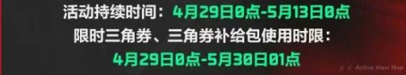 1、三角洲行动开启了全新的瓜分三角券的行动,从4月29日持续到5月13日。