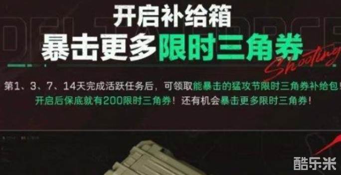 4、在第1、3、7、14天完成任务后,就可以领取可以暴击的限时三角券补给包,可以暴击获得更多三角券。