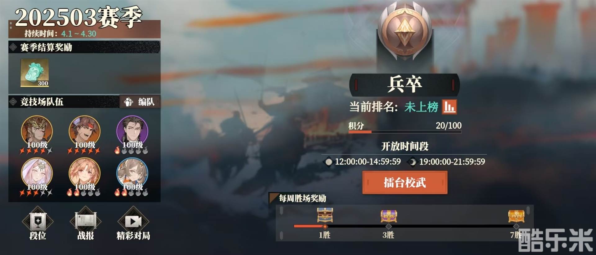 校武场也是采用赛季的模式,但是这个活动并不是全天都会开放,开放的时间段是12:00~14:59:59,19:00~21:59:59,所以大家要看好时间过来进行加入,不然就会错过这项活动。玩家进入活动中之后,点击擂台校武,就可以开启自动匹配进行战斗。如果感觉对面的敌人实力比较低,可以直接开启自动。如果是实力相当,建议采用手动操作的模式,因为手动操作可以更多地发挥出自己阵容优势。所以在校武场中经常发生低战逆袭的情况,就是因为可以手动操作的原因。