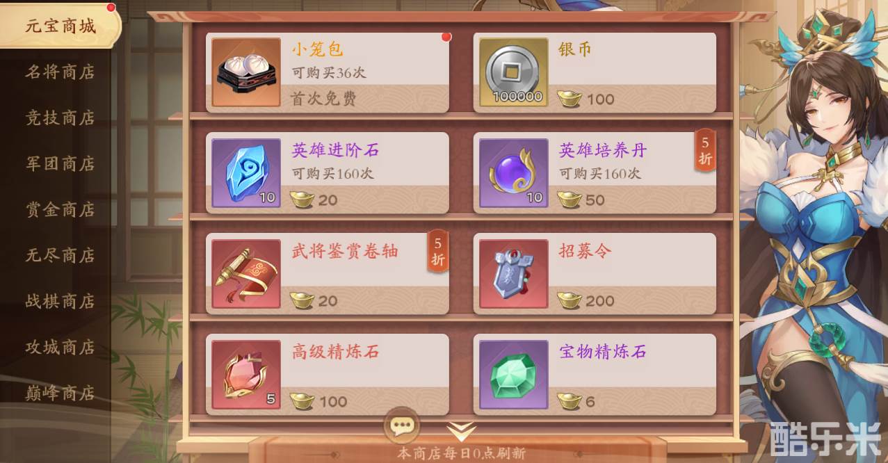 超值礼包有各种战力提升材料,每日一般把200~600元宝的档位都买下,后续档位根绝需求买,一些需求量大的材料先在超值礼包购买性价比比较高,例如“武将鉴赏卷轴”和“银币”。