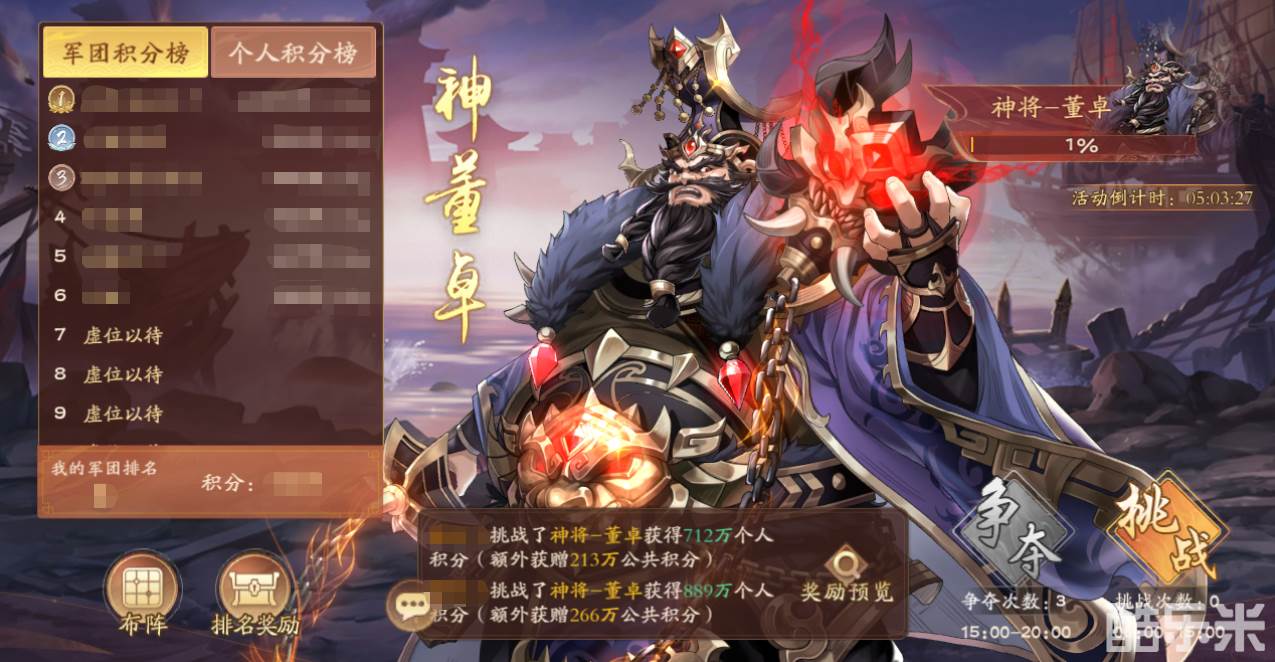 ✦激斗神将每日0:00——8:00为展示期,8:00——15:00为挑战期,可挑战神将,15:00——20:00位争夺期,可相互争夺