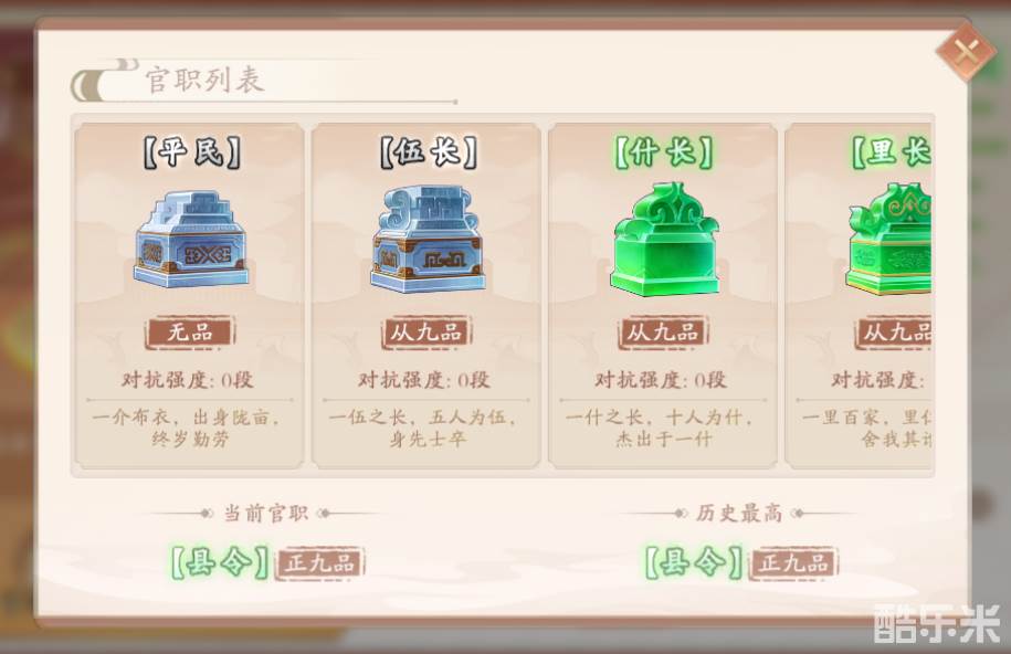 在征战三国战场的过程中,随着实力的不断提升可逐步提升官职品阶。从平民晋升为都尉,再从都尉晋升成将军。最后成为乱世中的最高官员,每一次晋升都伴随着荣耀的加冕和实力的提升!下面和酷乐米小编一起来看看吧