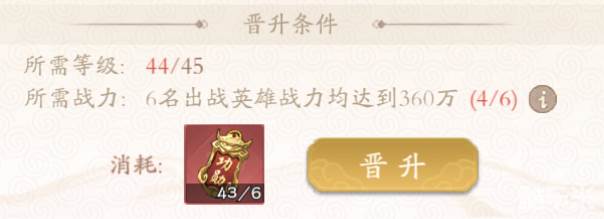 ✦官职需满足等级、上阵6个武将需达到指定战力、任务条件及道具条件。