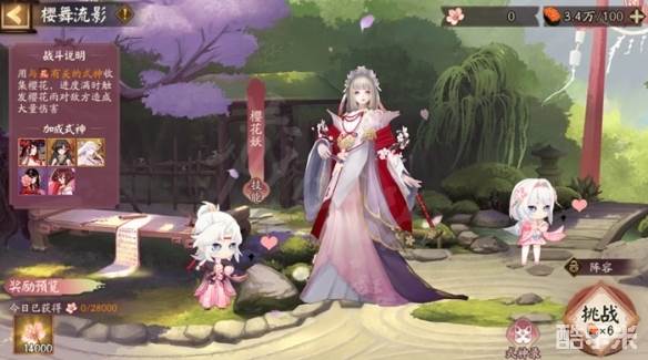 1、出行路上突遇强敌!大人们需要消耗体力进行挑战,若大人使用与“花”有关的式神,行动可累积「花见」触发「樱花雨」对敌方造成大量伤害!