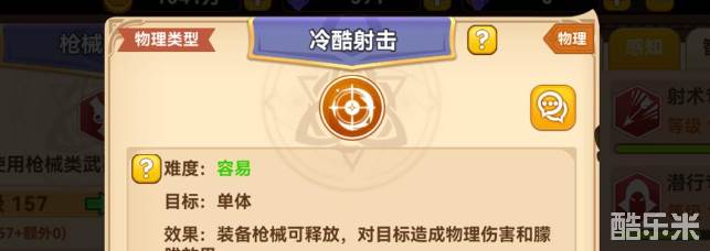 ①冷酷射击(带有强制控制效果,使目标受到的会心伤害增加,原地不动罚站)
