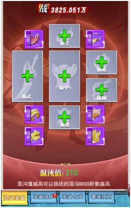 混沌装备分为仙魂、魔魂两种,每种各六个部位;魔魂装备可通过击杀混沌BOSS获得,仙魂装备击杀混沌BOSS有较低概率获得;每个部位都会提供混沌值,混沌值越高可挑战的混沌BOSS等级越高;分解多余的混沌装备还可获得混沌装备强化材料,强化后提供角色属性加成。