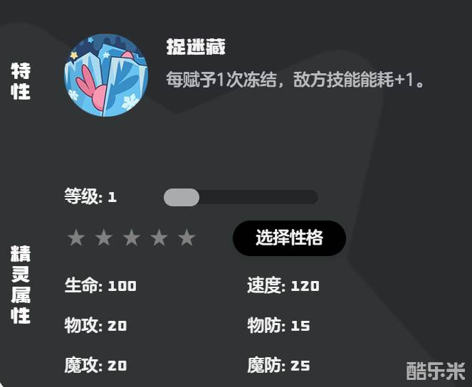 帽兜娃娃其实就是雪影娃娃还没有进化前的形态,帽兜娃娃的种族值为476、精灵属性分别为萌系和冰系、精灵特性为捉迷藏,也就是每次上场都带有1次冻结敌人的能力,还能增加1点对手的耗能。