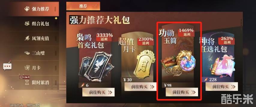 此外游戏中还推出了包含丰富奖励的各类礼包,其中功勋玉简便是比较受玩家关注的一个,这个礼包不仅在价格设定上十分合理,也充分考虑了不同玩家的消费能力,以98元档的功勋玉简为例,里面除了直接提供了价值980的三山壁以及1个珍贵的枭山魂珠之外,还贴心地附赠了一些其他的实用道具,比如额外的抽卡机会以及恢复资源等。