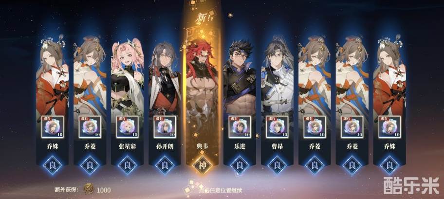 其中新手卡池不期而遇就就是10次为一个保底,系统便会确保必定会有一位名将出现,让大家在抽卡过程中有了明确的心理预期,而当招募次数达到40次时,更是会有至少一位神将会出现,这种逐步递增的保底设定,也增加了玩家获得高品质武将的机会,更值得一提的是,在这个卡池中进行十连招募时,所消耗的天机令还享受着8折优惠,这简直就是游戏送给新手玩家的一个超值大礼包,可以说是一定程度上面降低了新手玩家获取武将的门槛,不过这个卡池当玩家累计获得两位神将之后,该卡池便会自动关闭。