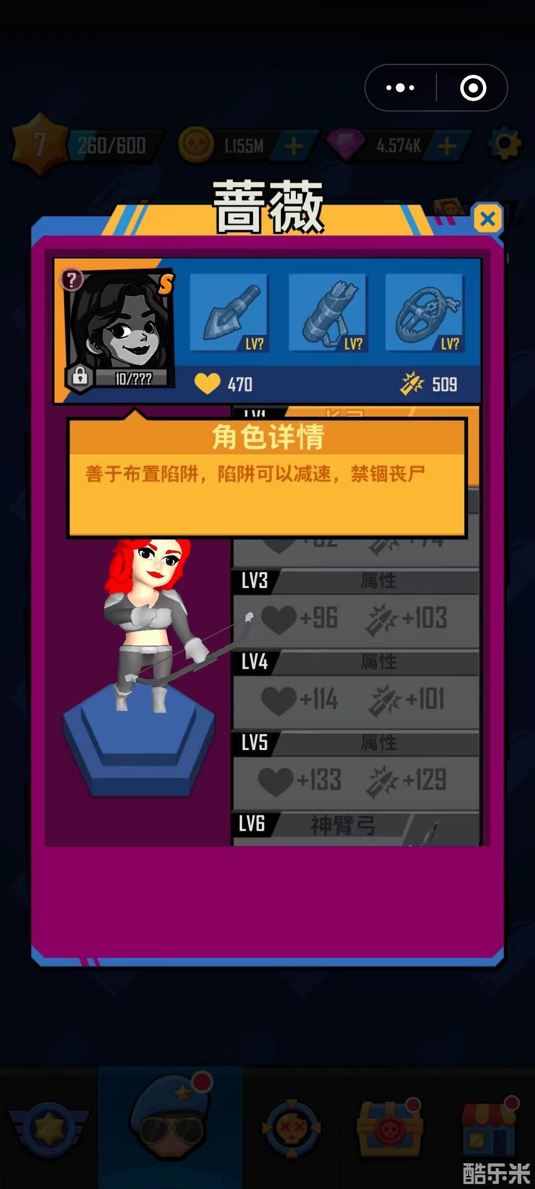 9号:蔷薇,代称弓手,第二个装备全加攻击的士兵(这么漂亮的女人这么暴力的吗),技能是放置陷阱,针对BOOS和大群僵尸有奇效。攻击方式为线型穿透攻击,有群攻能力。
