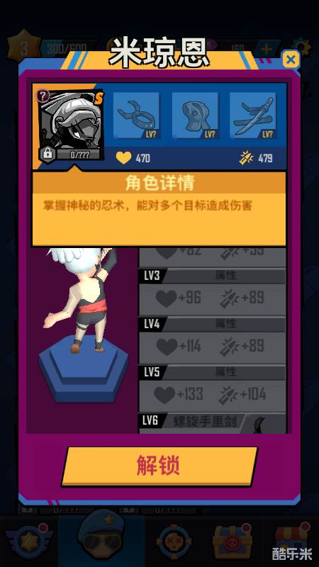 12号:米琼恩 忍者,通过第三关付费解锁,初始S级英雄,一个看似近战,实则是远程扔手里剑的角色,掌握神秘的忍术,能对多个目标造成伤害,攻击时会触发多个飞镖,远距离围着团队旋转,并自动攻击敌方单位,技能冷却时间长,可以通过提升第三件装备把冷却时间从30秒降低到18秒,唯一美中不足的就是技能攻击范围有点小。