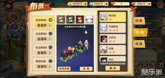 在伙伴界面选择布阵,选中需要替换或上阵的伙伴,点击“参战”按钮即可