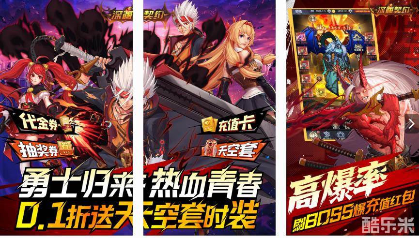 《深渊契约》是一款魔幻冒险挂机手游。故事发生在遥远而神秘的舞刃大陆,因受到外来邪恶势力的入侵,整个大陆支离破碎,为了保护最后的净土-光熙城邦,你将化身为一名天赋异禀的英雄战士,深入深渊领域,一路过关斩将、披荆斩棘,解锁海量装备技能,挑战深渊跨服Boss,更有多人副本、公会争霸、秘境寻宝、转职觉醒、战宠养成等海量特色玩法。亲爱的勇士,属于你的冒险之旅即将开启,快来挑战吧