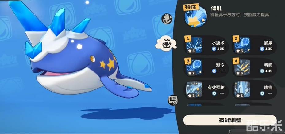 在PVE中,深蓝鲸的技能推荐以低消耗、高效率为主,像“泡沫喷射”与“潮汐冲击”这种物理水系技能不仅输出稳定,而且适合推图节奏,能迅速清理野怪或副本敌人,打出不错的伤害表现。中后期可以搭配“高压水炮”这类魔攻技能,用于突破高血量敌人或连续输出,其能量消耗递减的特性也很适合拉长战线。此外,“水环”作为一个兼具防御与能量恢复的技能,也非常适合在PVE中维持输出节奏。