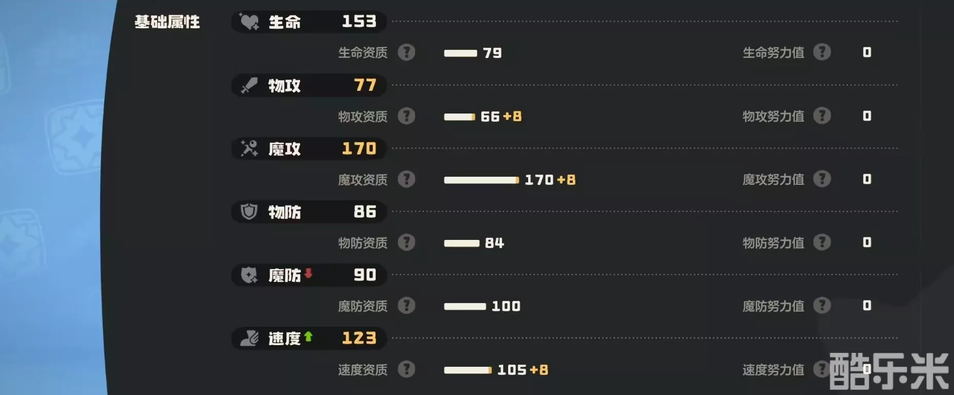 白金独角兽是属于光属性的精灵,它的特性是目空,非光系技能威力提高25%。这个特性非常独特,因为大多数精灵都是自身属性技能威力高,而白金独角兽的这个特性则完全相反。资质很高,总资质604,生命79,物攻66,魔攻170,物防84,魔防100,速度105。拥有目前所有精灵中极高的魔攻属性,在性格方面,小编推荐加魔攻减少物攻,,这样做到极致。这样来看,保守性格是最合适的选择。