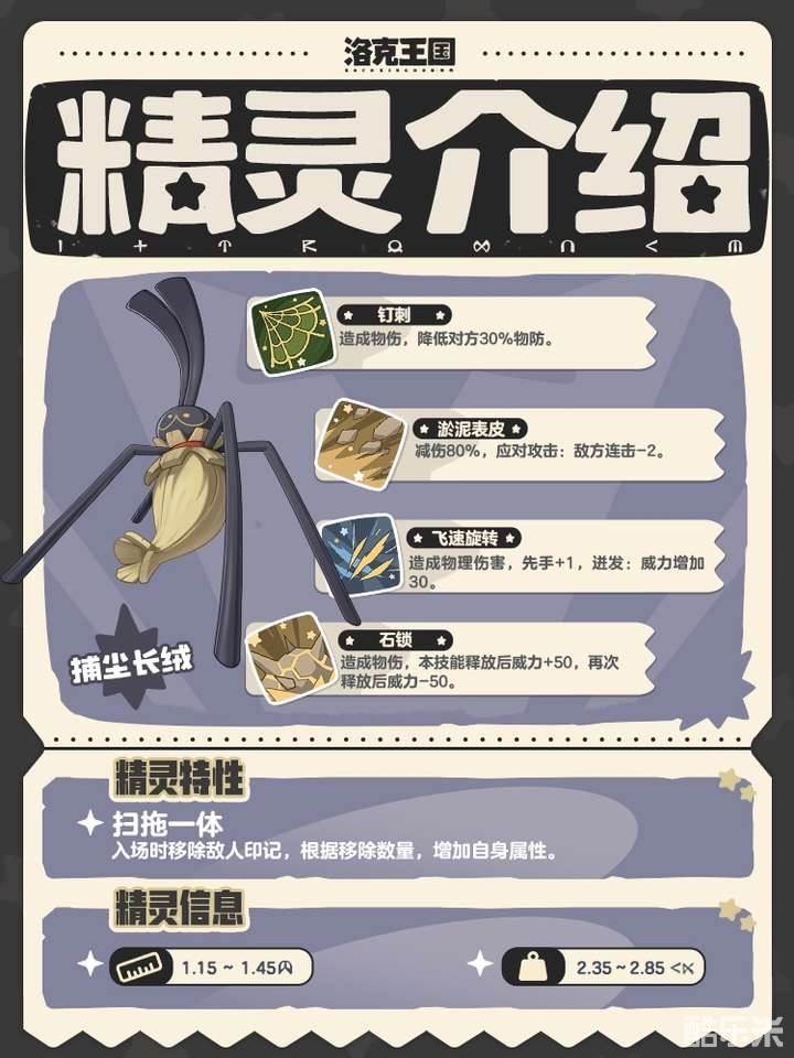 玩家们可以先不断的提升他的等级,等等级达到之后就可以来进化成食尘短绒,作为一个地系和虫系双属性的宠物,玩家们在对战的过程中可以更加具有优势,拥有多种特性,可以来对抗不同的敌人,无论是电系还是毒系或者石系,火系都有明显的克制效果,后续玩家们还可以进化成捕尘长绒,可以来实用灰尘进行清洁,他的种族值也是非常高的。