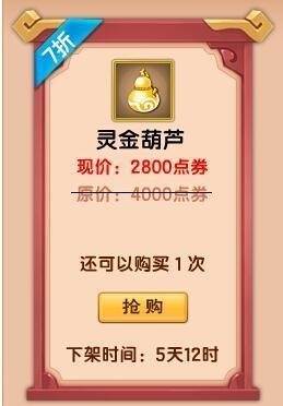 1、限时抢购得到:限购1次,售价2800点卷。