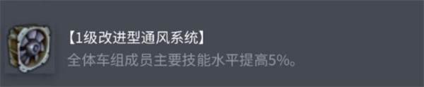 能为全体乘员提升5%主要技能效果,等于是全面增强坦克性能。虽然提升不大,但作为1级车辆的通用提升选项,稳定又实用。