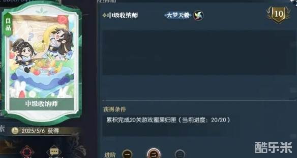 3、完成20个关卡即可获得说英雄卡【中级收纳师】,该卡片会活动限定;