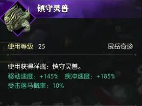 4、使用礼盒即可获得该坐骑,坐骑的移动速度为+145%、疾冲速度+185%。