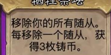 效果:移除你的所有随从,每移除一个随从,获得3枚铸币。
