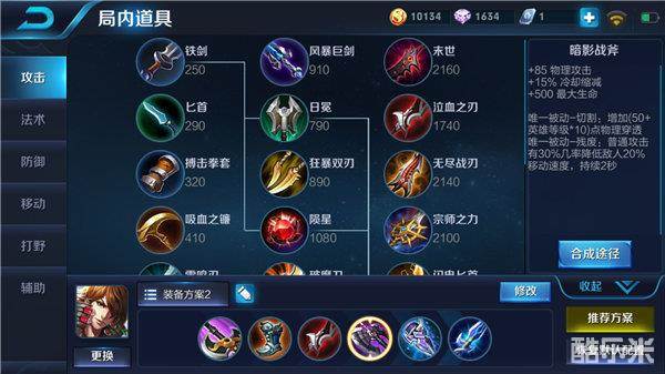 六神装:巡守利斧、急速战靴、泣血之刃、暗影战斧、冰痕之握、名刀·司命