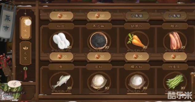 2、制作金玉满堂共需五种食材,玩家可通过菜市进行购买。