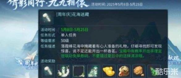 倩女幽魂花海秘藏属于周年庆活动,玩家只需仔细探索地图就能找到大量宝箱奖励,具体的位置可能很多小伙伴还不清楚,下面酷乐米小编为大家带来了详细的倩女幽魂花海秘藏宝箱位置介绍,有需要的不要错过了。