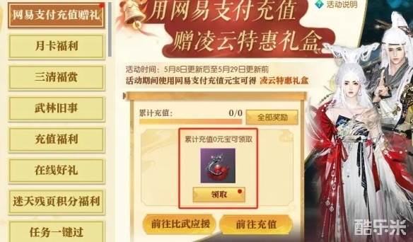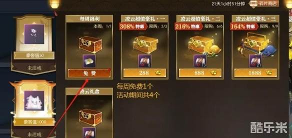 逆水寒中凌云能拿去兑换限定稀有外观,那么免费凌云怎么获得呢,打开【比武大会-特惠商店】,找到【每周福利】可以领取一个盒子,活动期间一共四个,新开的网易支付界面也能领取1个盒子,接下来就由酷乐米小编给大家带来了详细的《逆水寒手游》凌云获得方法!