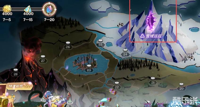 当冒险团达到30级,服务器开服第15天,将会开放趣味肉鸽玩法【雪域远征】,后续每两周循环一次每次持续一周,可从主线挂机界面地图上方【雪域远征】入口进入。下面和酷乐米小编一起来看看吧