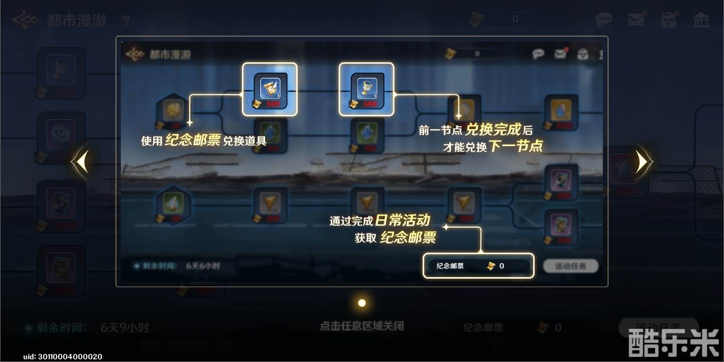消耗纪念邮票兑换道具,前一个节点的道具被兑换之后才能解锁下一个兑换节点