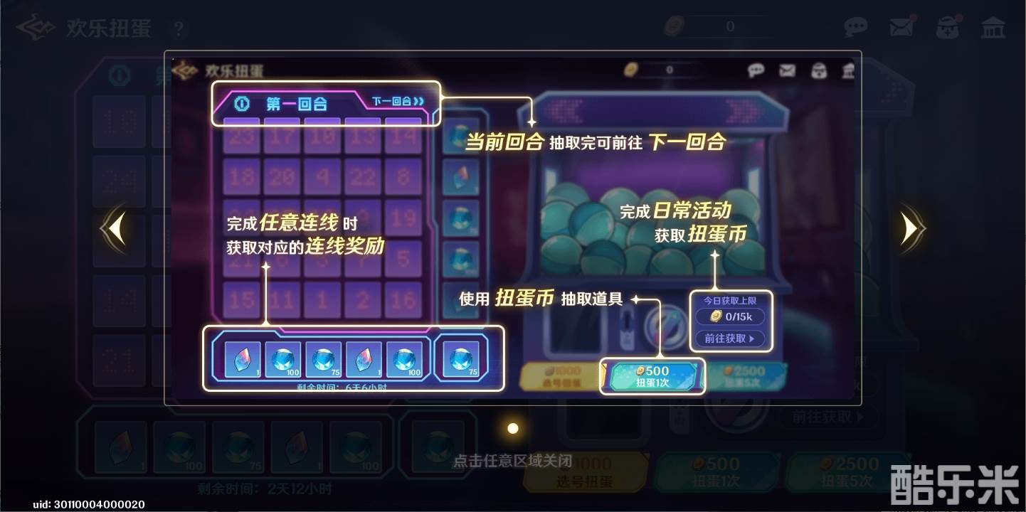本期带来的是第一个循环活动【扭蛋乐】的活动介绍,下面和酷乐米小编一起来看看吧