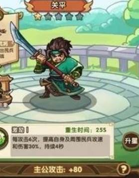 2、主公们达到10级后会免费赠送一个民兵武将关平,能大幅提高民兵的战力。