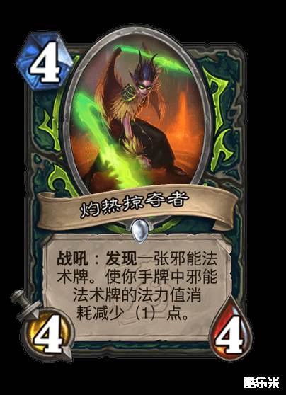 效果:战吼:发现一张邪能法术牌。使你手牌中邪能法术牌的法力值消耗减少(1)点。
