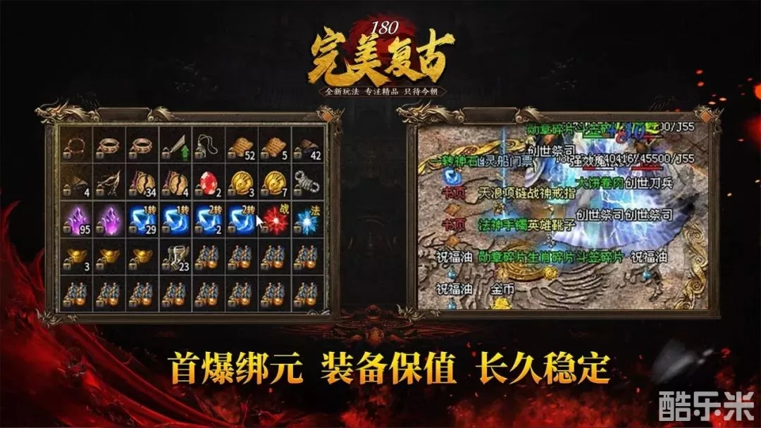 《完美复古》是一款180版本三职业复古传奇手游,职业平衡,创新玩法,隐藏地图,闯关模式,等你来战!