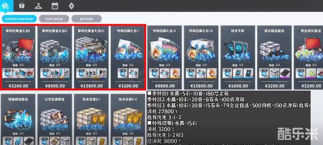 除了通行证之外,其他的礼包也有不同的特点。玩家可以根据个人的需求去选择限时礼包,就好像是新增的泰特拉礼包。特殊招募就只需要选择囤材卷即可。2号还有3号价格相对比较高,并不建议大家选择。另外如果想要选择月卡的话,那么大小月卡只需要2选1即可。