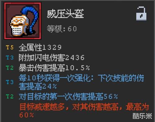威压头盔,配合冰风大招和技能减速可以享受高额加成;